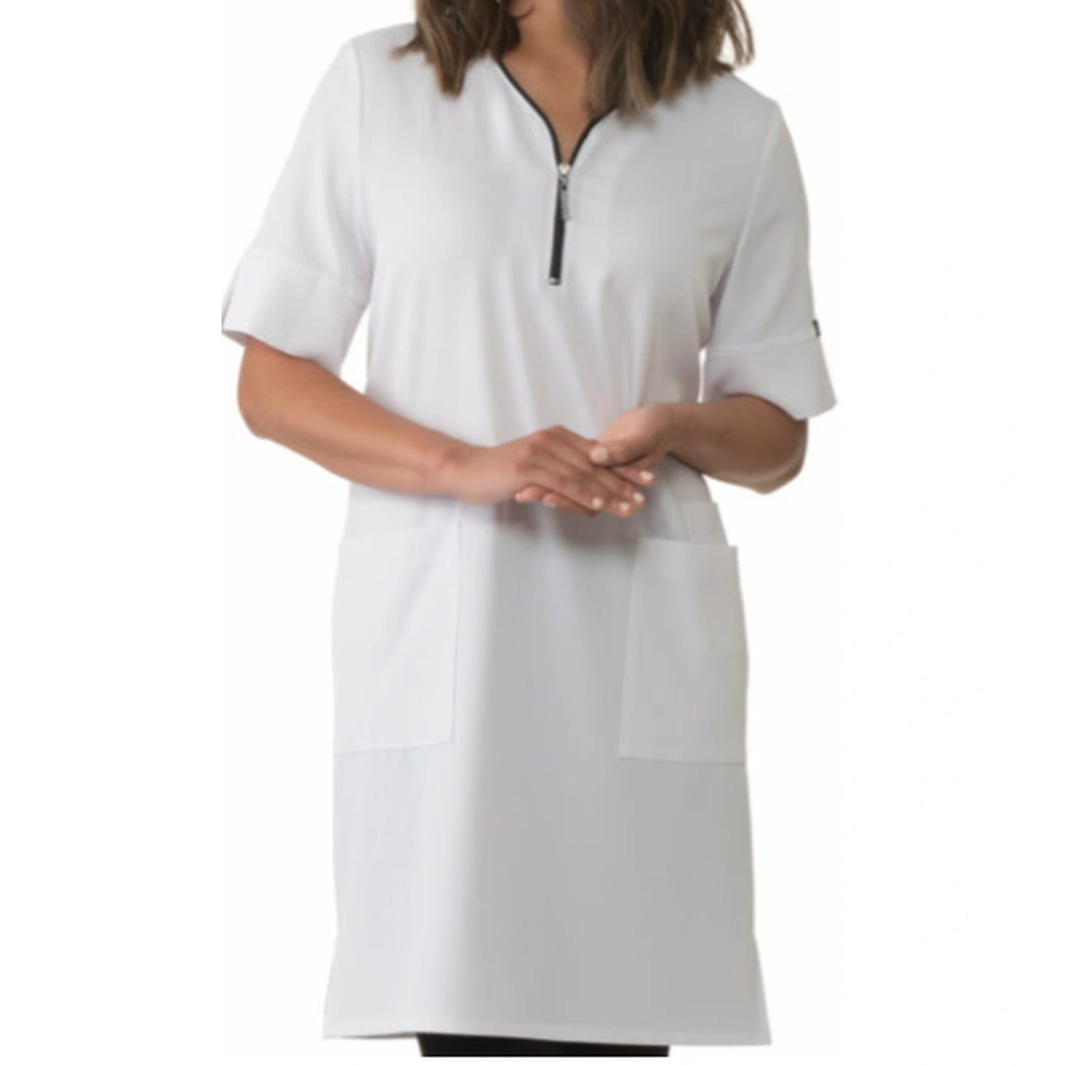 Fermeture éclair à l’encolure Grandes poches sur le devant Petite poche à gauche Manches courtes Laver à la machine et suspendre pour sécher Conserve toujours sa forme même après de nombreux lavages